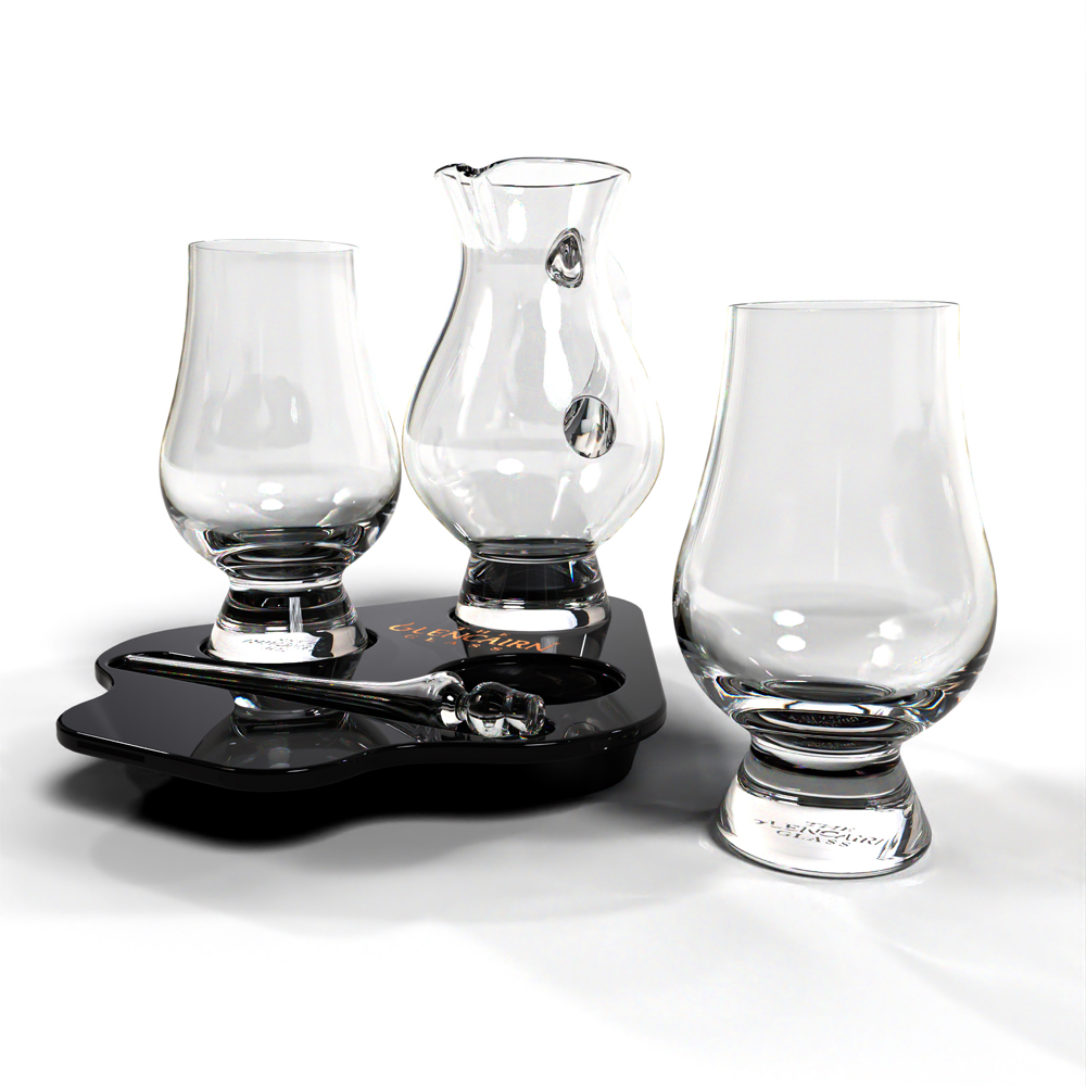Setet innehåller två klassiska Glencairnglas som har utsetts till det officiella whiskyglaset och har fått The Queens Award for Innovation i Storbritannien, en pipett, en Glencairn vattenkanna i blyfri kristall och en bricka i polerat och lackat trä.